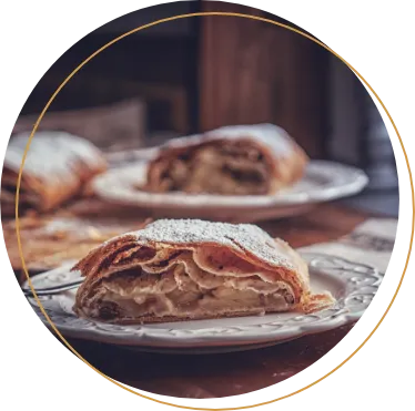 Apfelstrudel mit Kaffee oder Cappuchino 6,30€